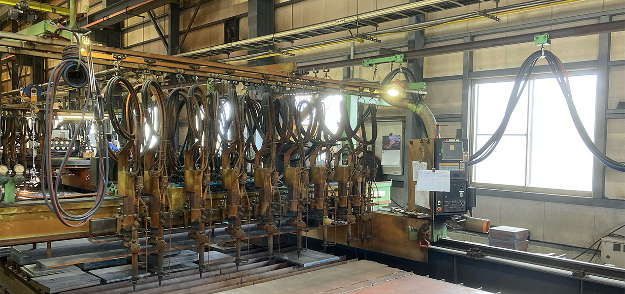 切断機器には、薄板用としてシャーリング切断機・レーザー切断機、また厚板用として、ガス溶断機を導入しています。